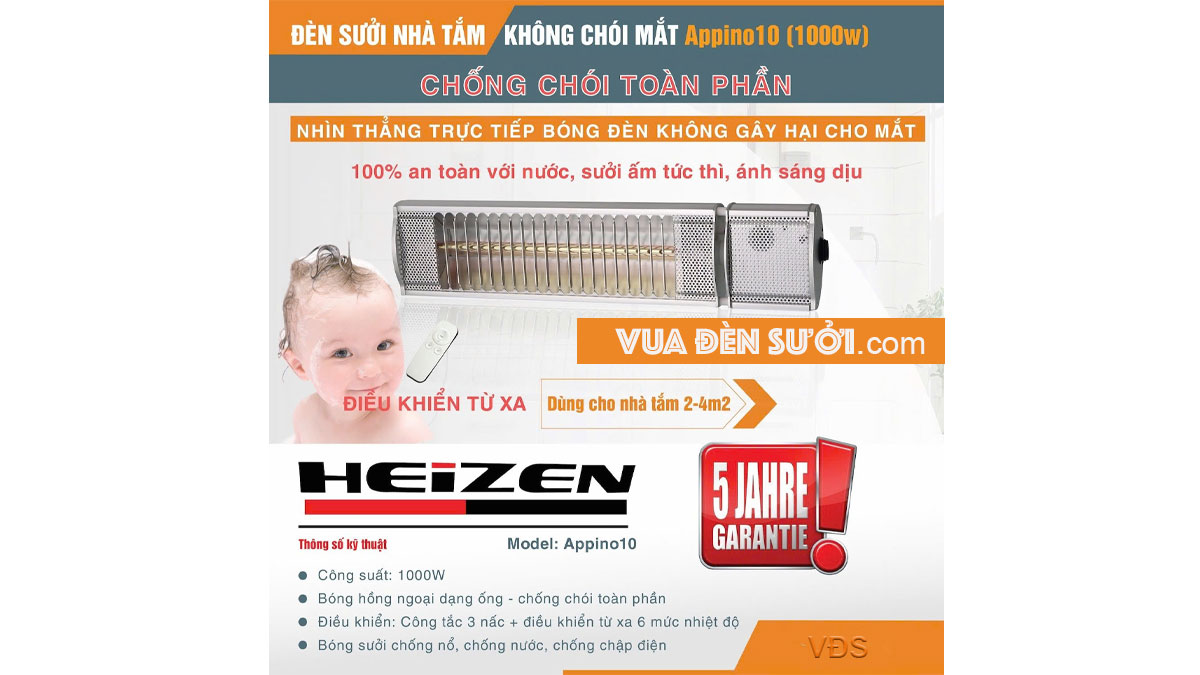 Đèn sưởi chống chói mắt Heizen APPINO10 là lựa chọn hoàn hảo cho những ai tìm kiếm sản phẩm bền bỉ, đẹp mắt, an toàn và đặc biệt phù hợp với gia đình có trẻ nhỏ.