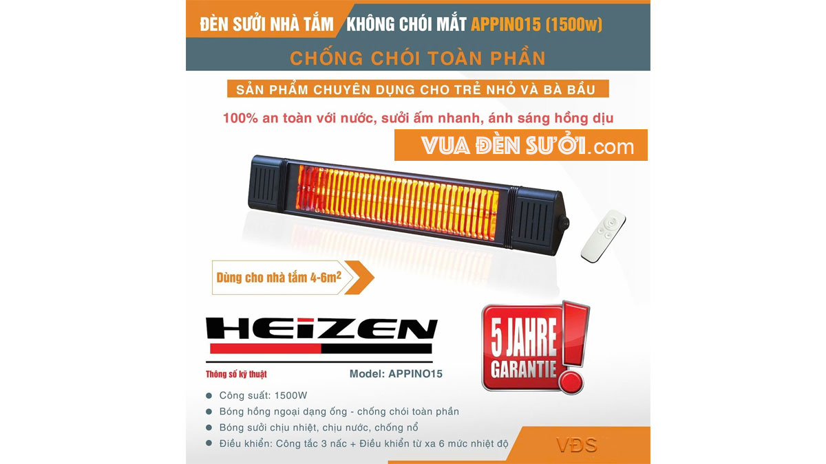 Đèn sưởi không chói mắt APPINO15 là lựa chọn cao cấp cho những ai tìm kiếm sự bền bỉ, an toàn và thẩm mỹ, đặc biệt phù hợp với gia đình có trẻ nhỏ.
