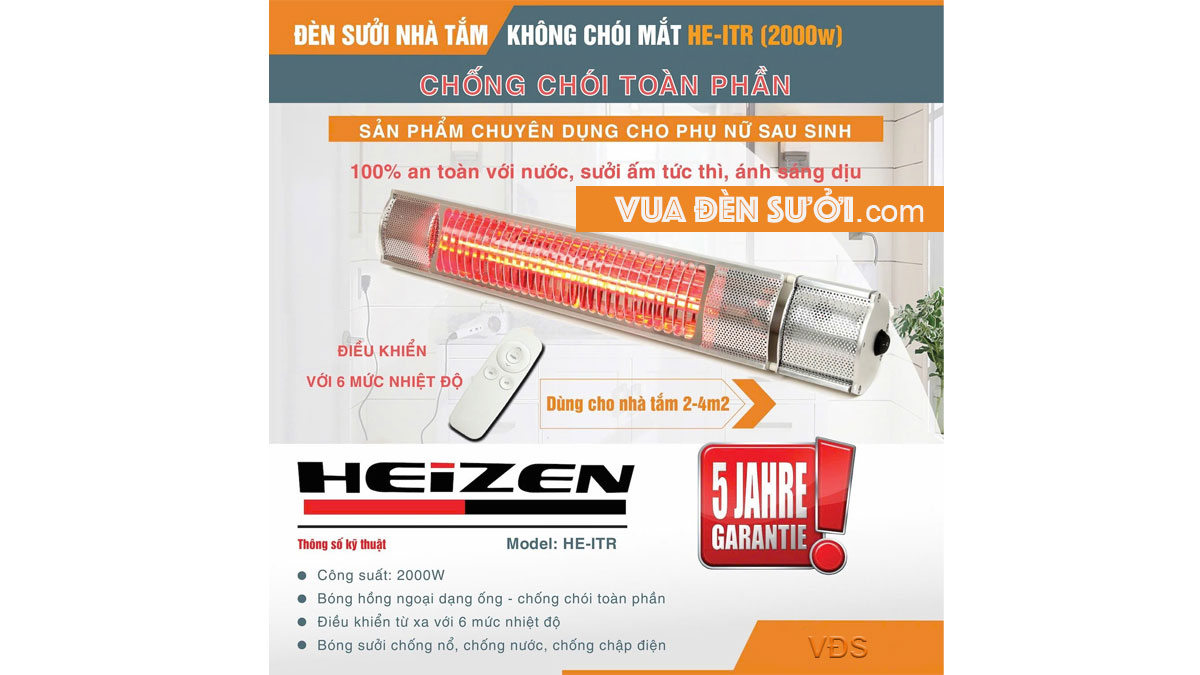 - Bóng hồng ngoại dạng ống, sản xuất theo công nghệ Đức mới nhất, chống chói hiệu quả, an toàn cho trẻ em. Công suất mạnh mẽ 2000W (ấm nhất thị trường đèn sưởi nhà tắm), ánh sáng hồng dịu từ tia hồng ngoại. Lớp phủ phân cực chống chói Polarized Anti Reflective Coating (PARC) tiên tiến, ngăn chặn tia phản chiếu gây hại cho mắt.