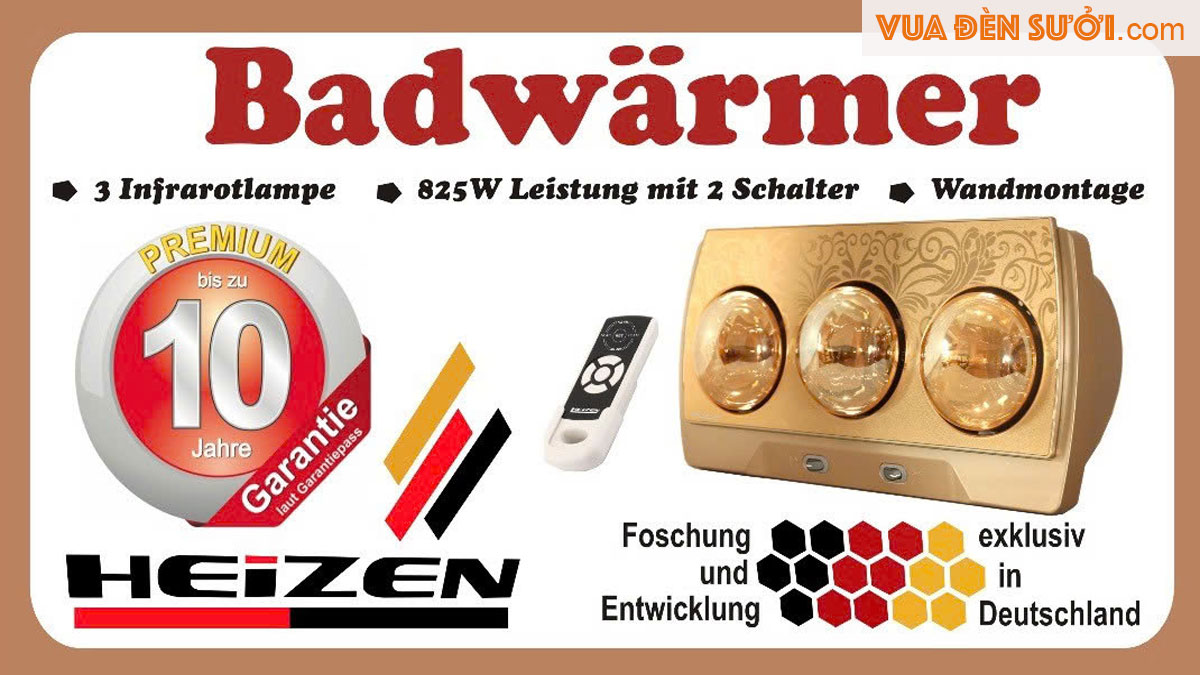 HEIZEN - HE3BR là dòng đèn sưởi cao cấp hàng đầu trên thị trường hiện nay, sự lựa chọn hoàn hảo cho những ai tìm kiếm sản phẩm bền bỉ, thiết kế tinh tế, an toàn và đặc biệt phù hợp với gia đình có trẻ nhỏ. Dòng đèn sưởi bóng tròn Heizen tự hào có chế độ bảo hành lên đến 10 năm - độc nhất tại Việt Nam!
