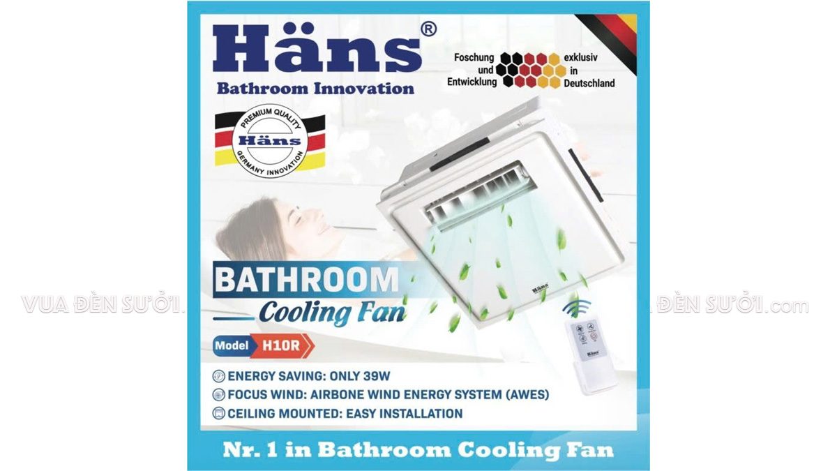 Quạt mát âm trần công tắc Häns H10R (có điều khiển từ xa) mở ra một kỷ nguyên mới, là sản phẩm tiên phong cho dòng quạt âm trần tại thị trường Việt Nam. Được ra mắt bởi nhà sản xuất Häns vào đầu năm 2020, sản phẩm nhanh chóng tạo nên tiếng vang nhờ thiết kế độc đáo và những tính năng vượt trội.